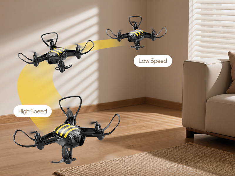 The drone has selectable slow and fast speeds, so children can choose according to their flying ability and surroundings.